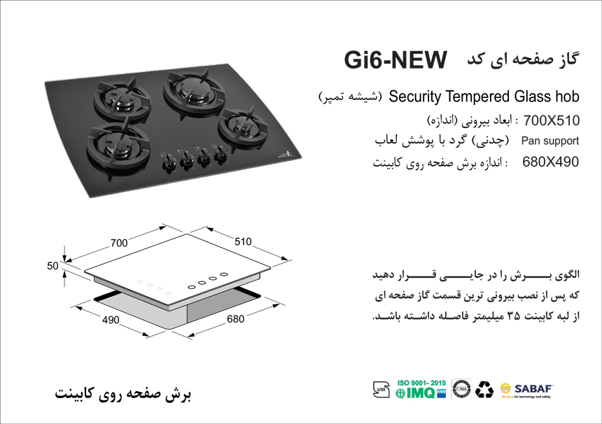 گاز رومیزی صفحه شیشه کد Gi6 اخوان