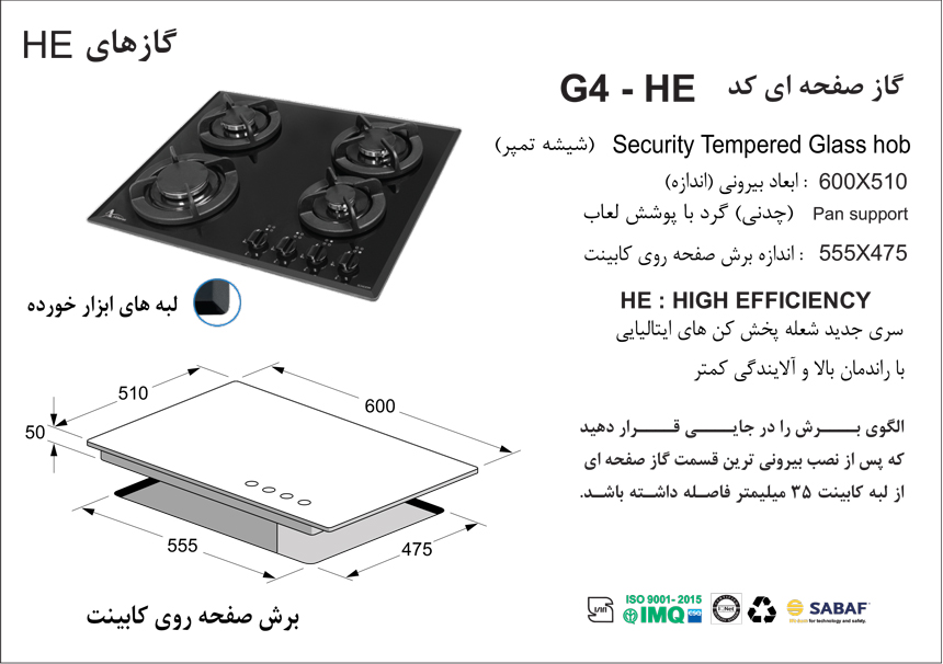 گاز رومیزی صفحه شیشه کد G4-HE اخوان