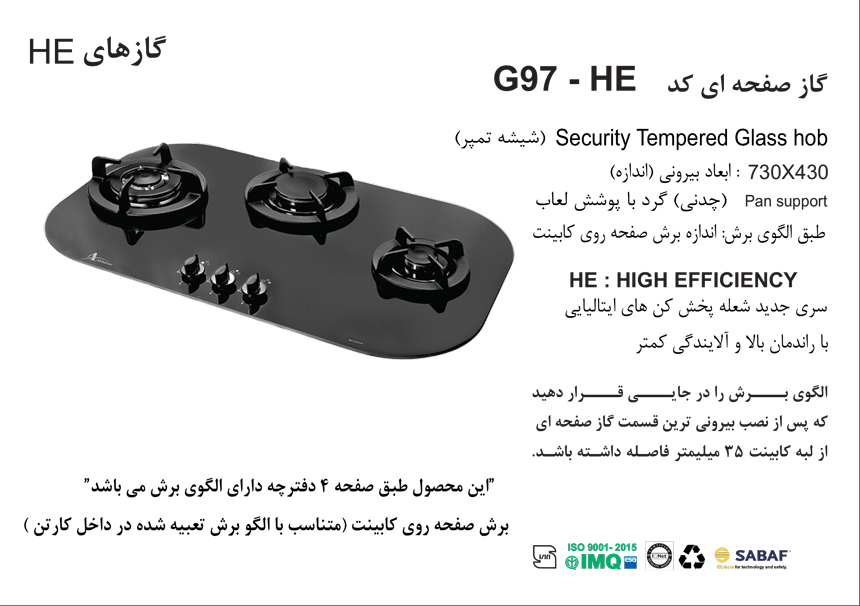 گاز رومیزی صفحه شیشه کد G97-HE اخوان