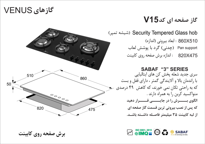 گاز رومیزی صفحه شیشه کد V15 اخوان