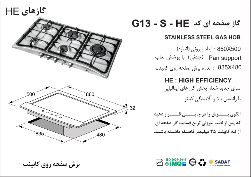 گاز رومیزی صفحه استیل کد G13-HE-S اخوان